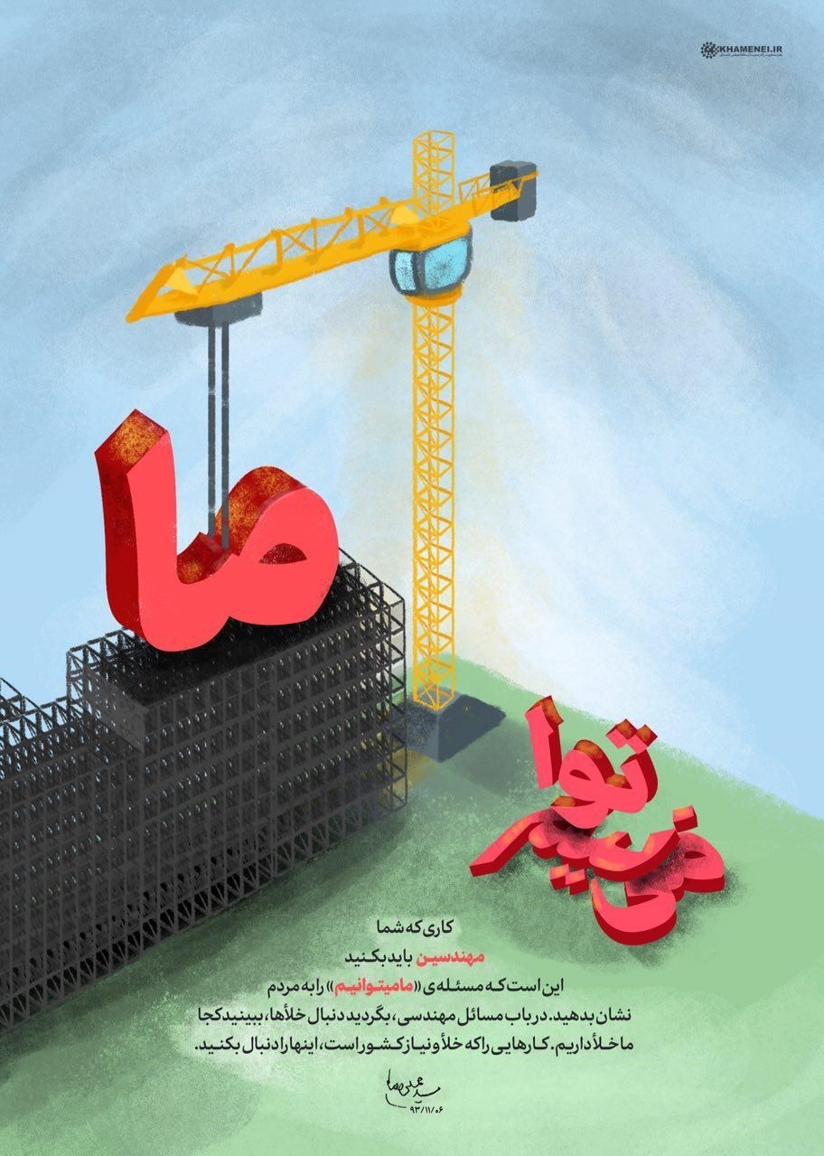 پایگاه اطلاعرسانی KHAMENEI.IR به مناسبت پنجم اسفندماه سالروز ولادت خواجه نصیرالدین طوسی و روز ملی مهندس، پوستری با عنوان «ما میتوانیم» را با الهام از این سخنان معظمله منتشر کرد: