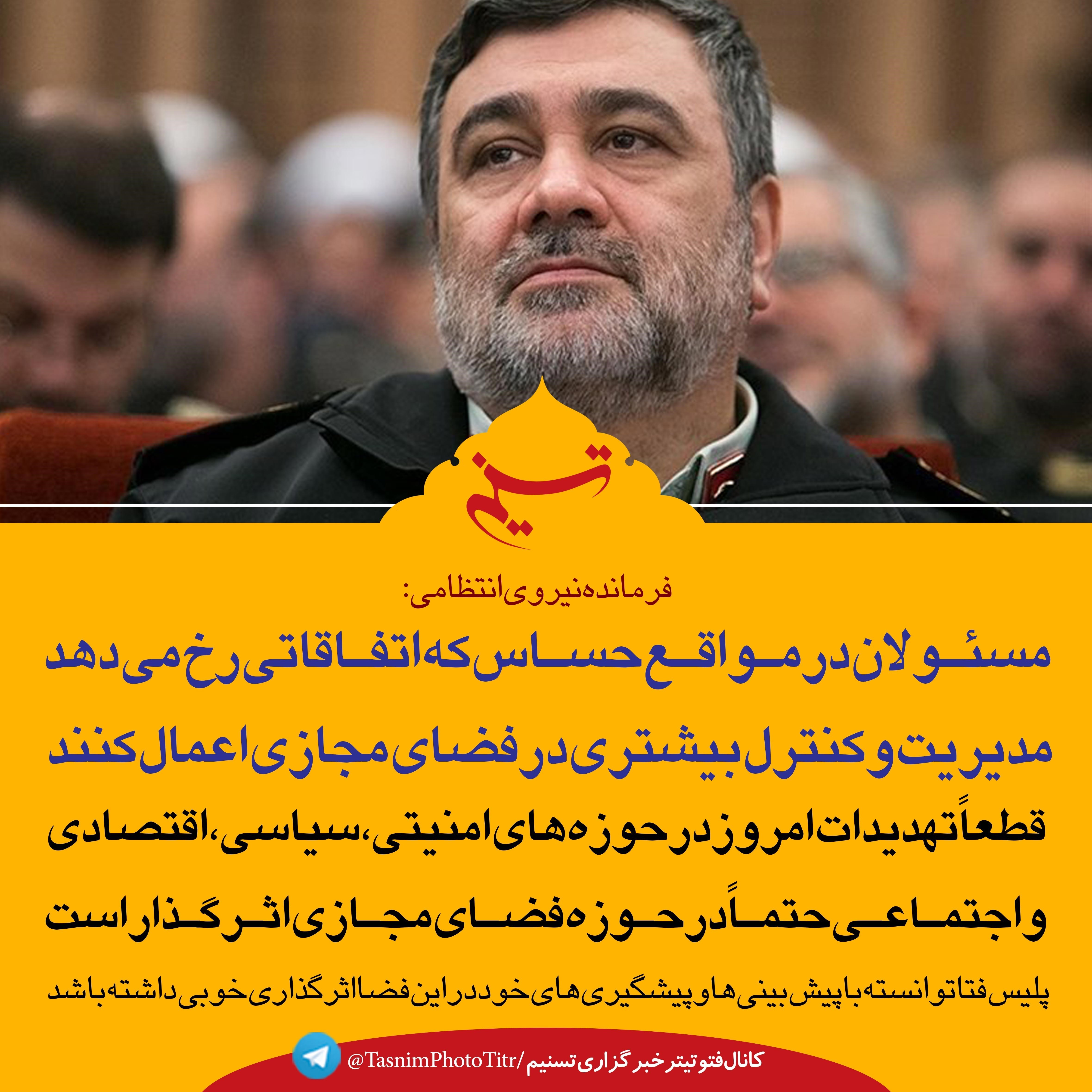 فرمانده نیروی انتظامی گفت: از مسئولان کشور درخواست داریم در مواقع حساس که اتفاقاتی رخ می‌دهد، مدیریت و کنترل بیشتری در فضای مجازی اعمال کنند.