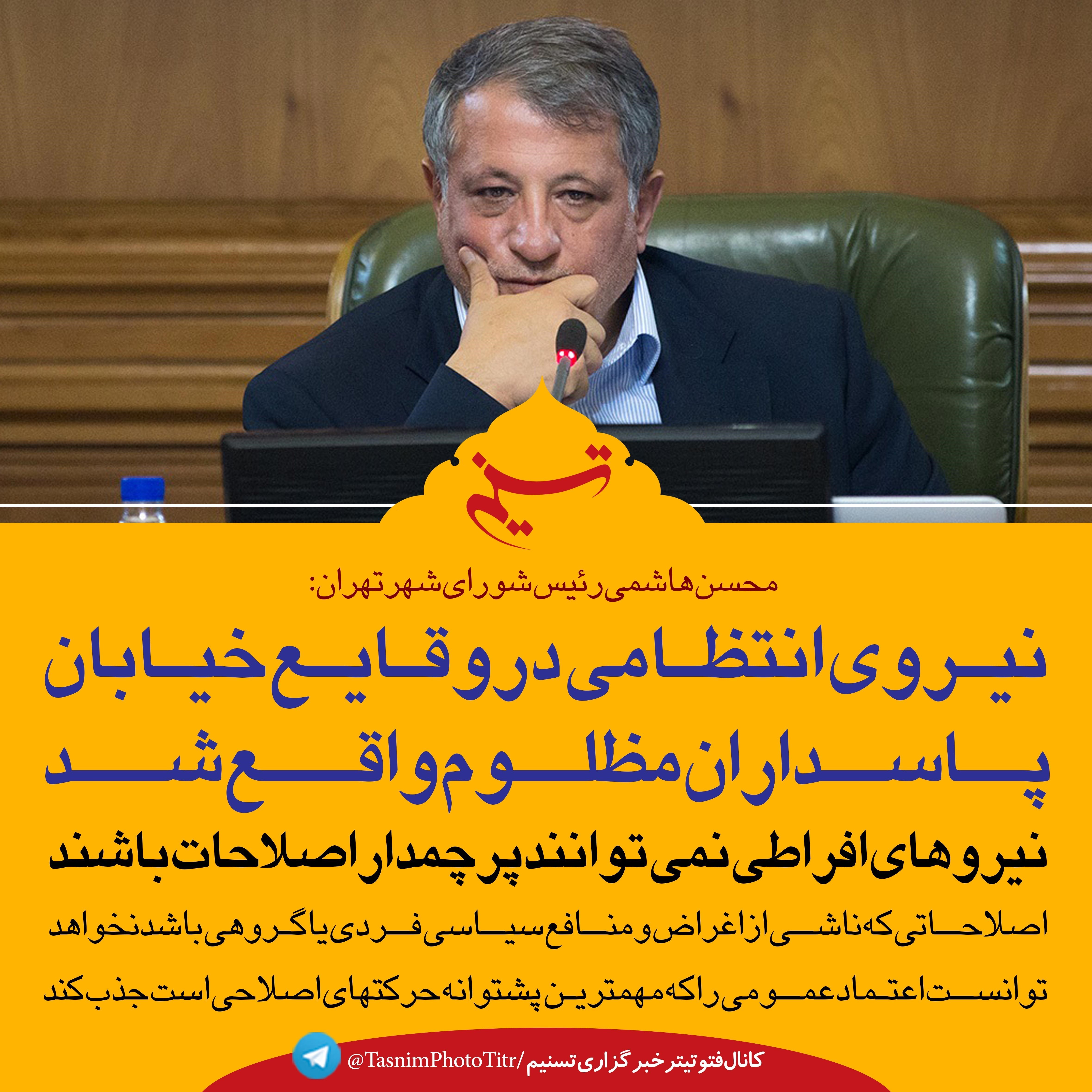 فتوتیتر| محسن‌ هاشمی: نیروی انتظامی در وقایع خیابان پاسداران مظلوم واقع شد