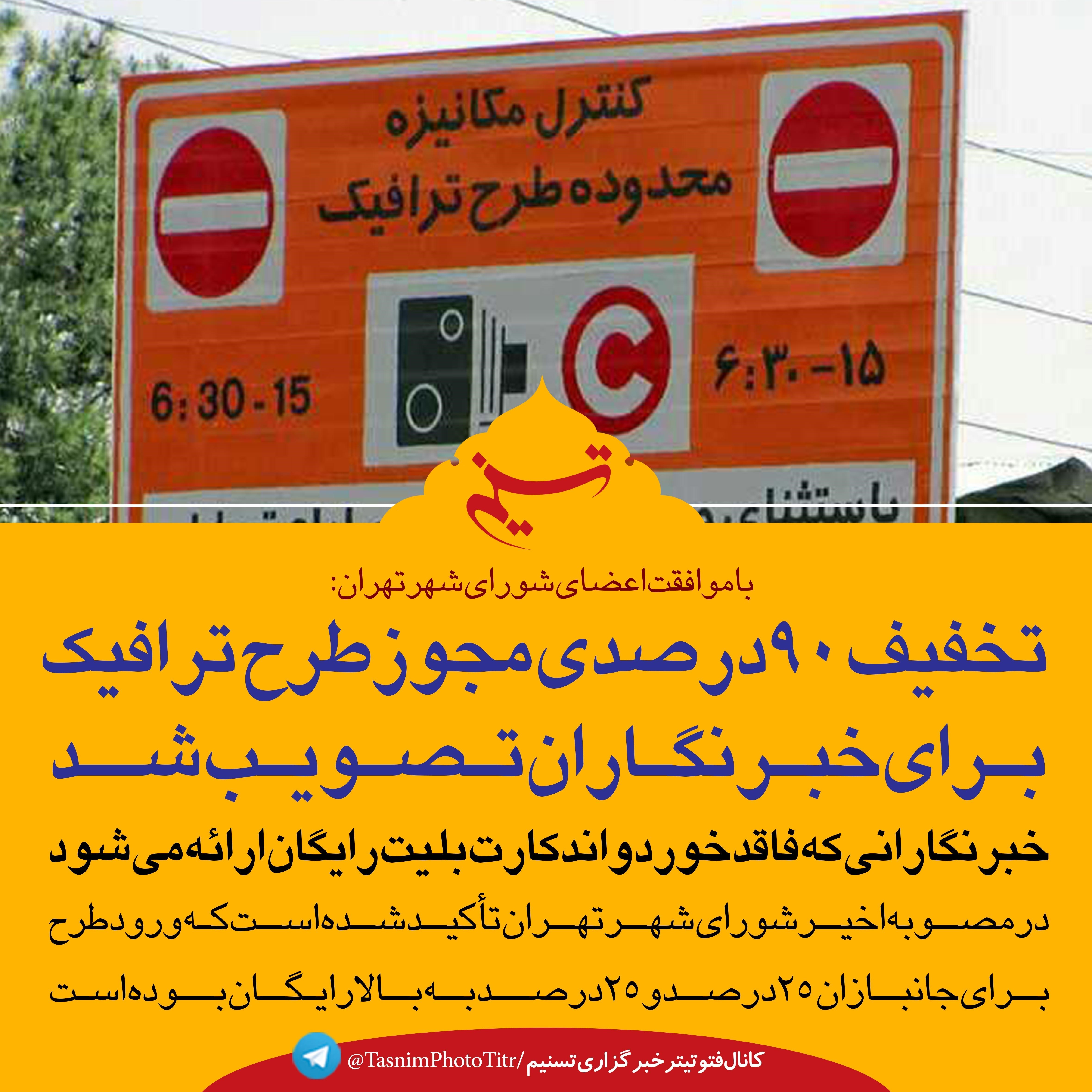 فتوتیتر| تخفیف 90 درصدی به خبرنگاران برای ورود به طرح ترافیک