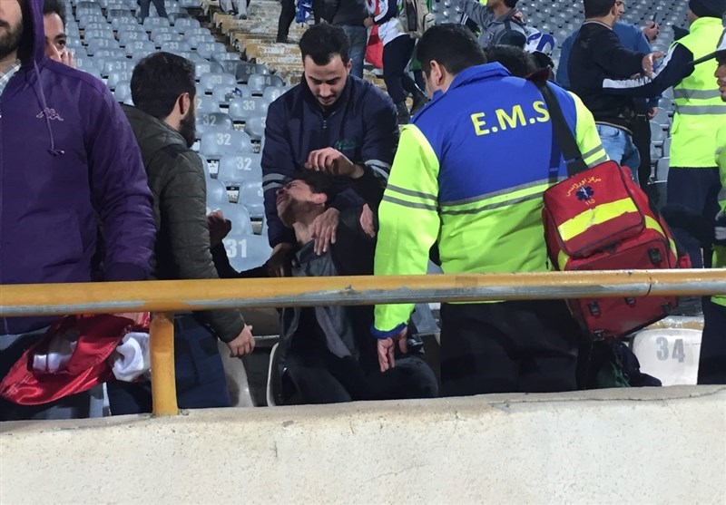 یک استقلالی در جریان درگیری هواداران روی سکوها مصدوم شد.