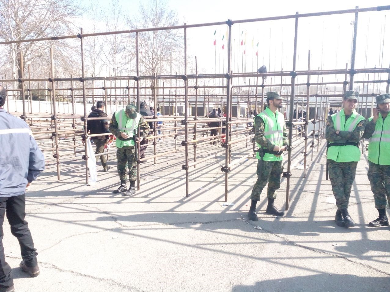 *ماشینها و موتورسیکلتهای نیروی انتظامی جلوی در ورزشگاه آزادی مستقر هستند تا از هرگونه درگیری احتمالی جلوگیری کنند.