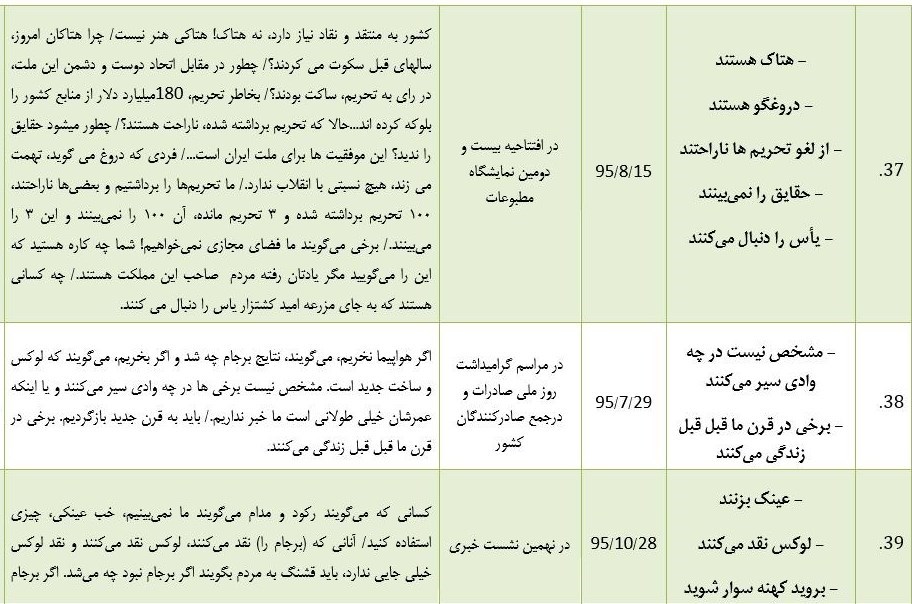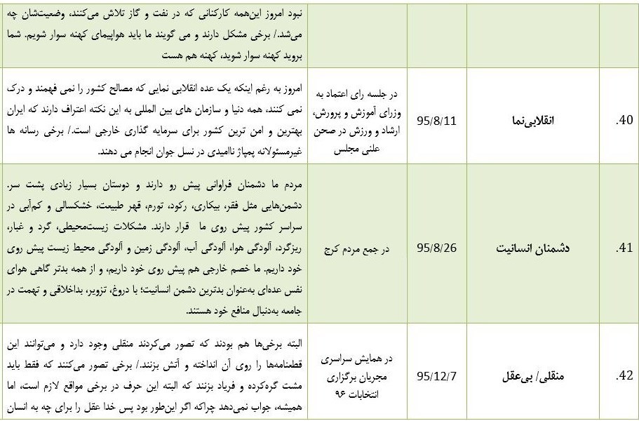 اما علی‌رغم توصیه‌های علما، کارشناسان، نمایندگان مجلس و حتی برخی مقامات دولتی به احترام دولت به حقوق منتقدان، توهین‌ و برچسب دولتی‌ها به منتقدان همچنان ادامه دارد و به پایان نرسیده است؛ پیش از این در یک بررسی اجمالی 53 توهین از سوی دولتی‌ها به منتقدان ثبت شده که با توهین امروز، این عدد به رقم 54رسید.