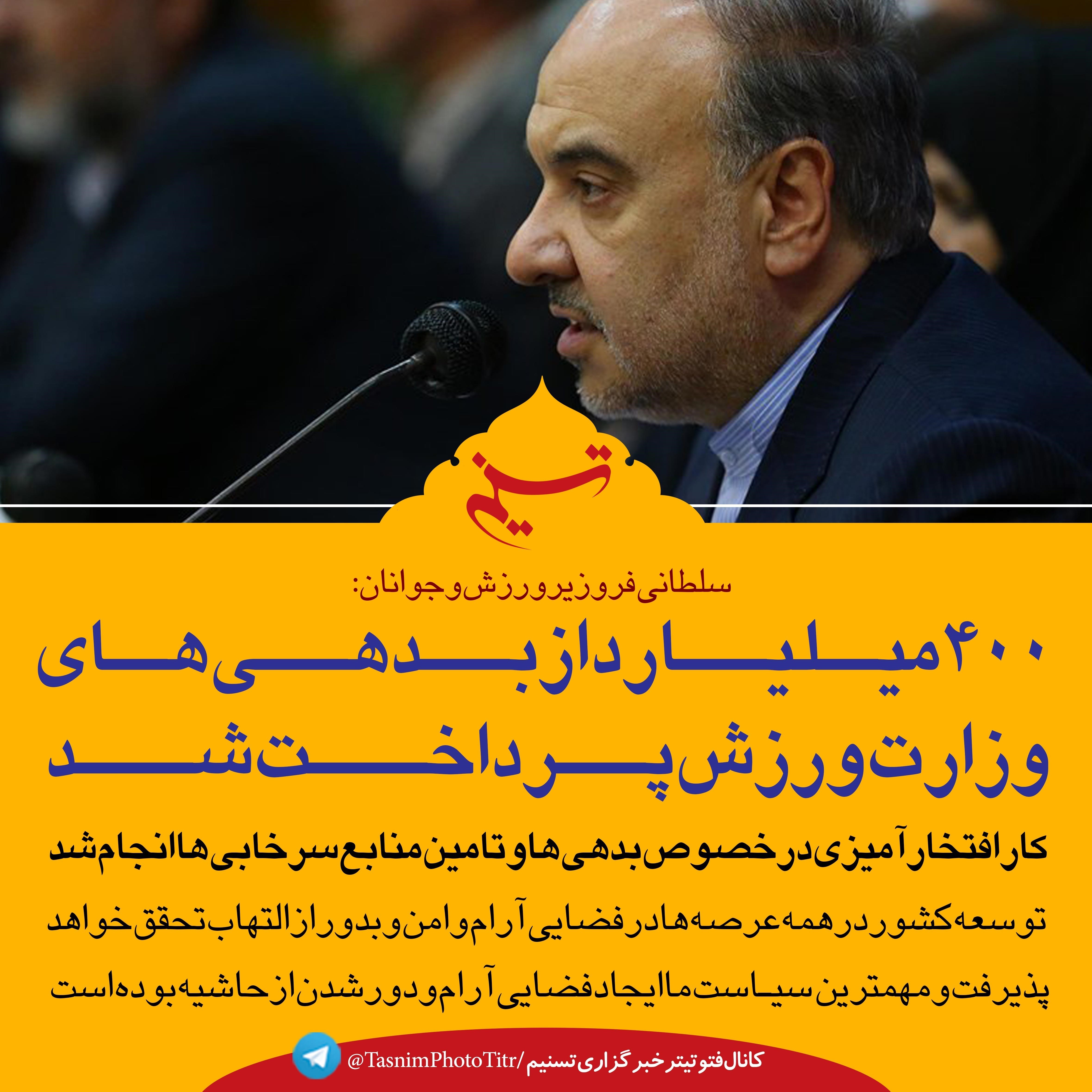 فتوتیتر|سلطانی‌فر: ‏‏400 میلیارد از بدهی‌های وزارت ورزش پرداخت شد