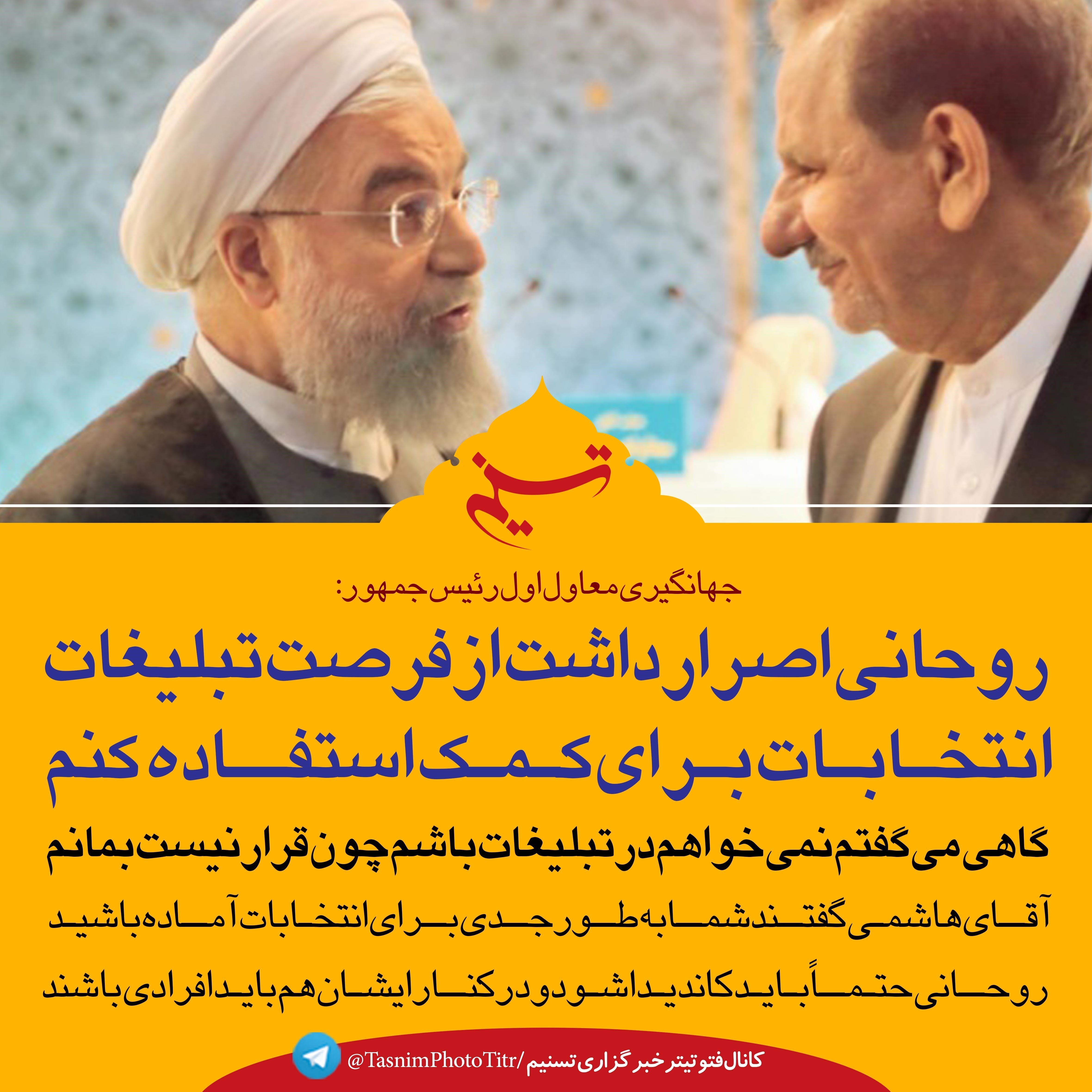 فتوتیتر| جهانگیری: روحانی اصرار داشت از فرصت تبلیغات انتخابات برای کمک استفاده کنم