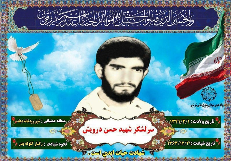به گزارش تسنیم، سردار سرلشکر شهید حسن درویش متولد سال 1341 در شهرستان شوش دانیال(ع) است که در دوران دفاع مقدس، مسئولیتهایی همچون فرماندهی تیپ 15 امام حسن مجتبی (ع)، جـانشین فـرماندهی محور عملیاتی شوش و فرماندهی تیپ 17 علی ابن ابی طالب (ع) را بر عهده داشت.