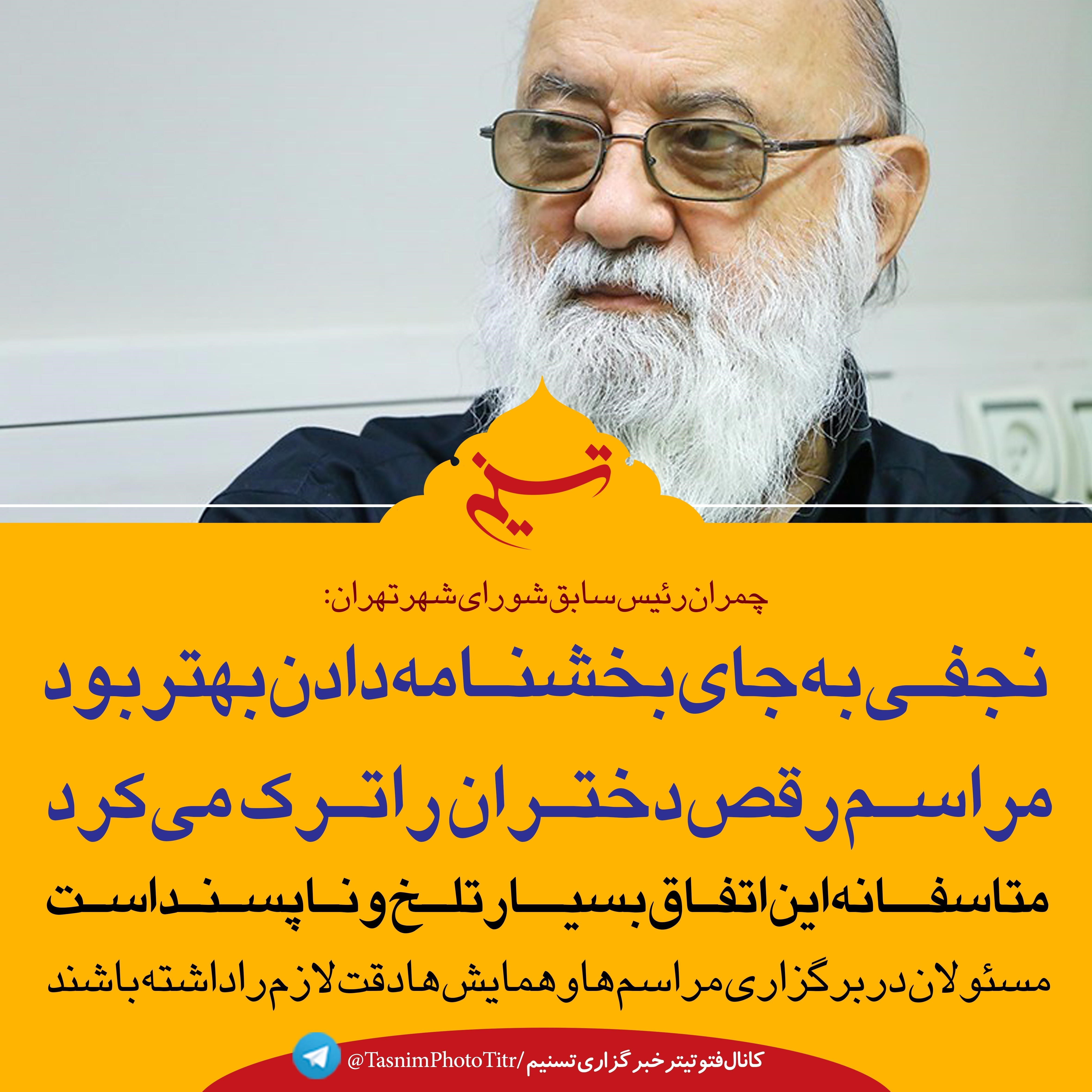 فتوتیتر| چمران: نجفی به جای بخشنامه‌دادن بهتر بود مراسم رقص دختران را ترک می‌کرد