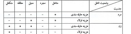 خانم‌هایی که دارای همسر معلول و ازکارافتاده بوده و به استناد رای و مدارک قانونی مخارج همسر و فرزندان بر عهده وی می‌باشد.