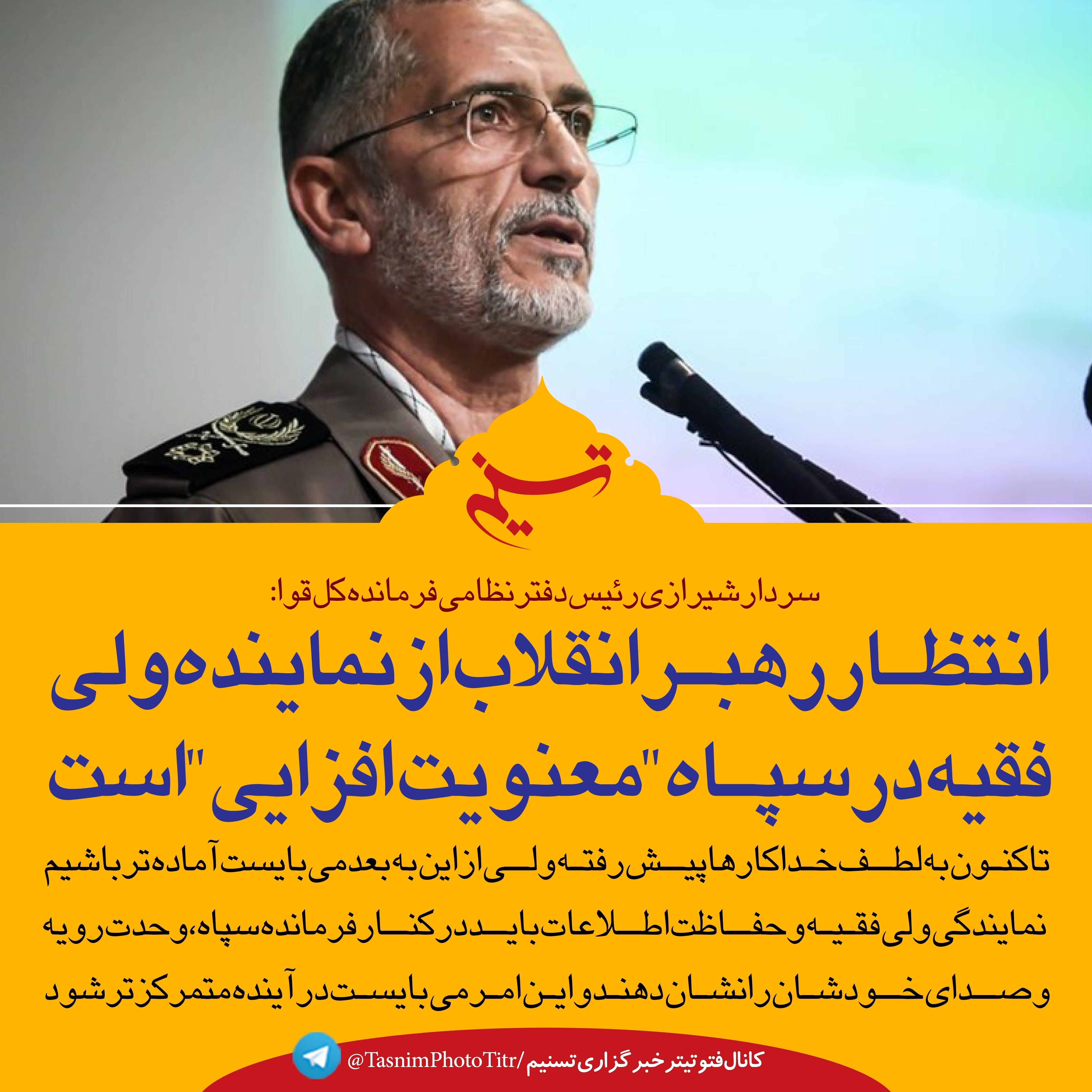 فتوتیتر| سردار شیرازی: انتظار رهبر انقلاب از نماینده ولی فقیه در سپاه "معنویت‌افزایی" است
