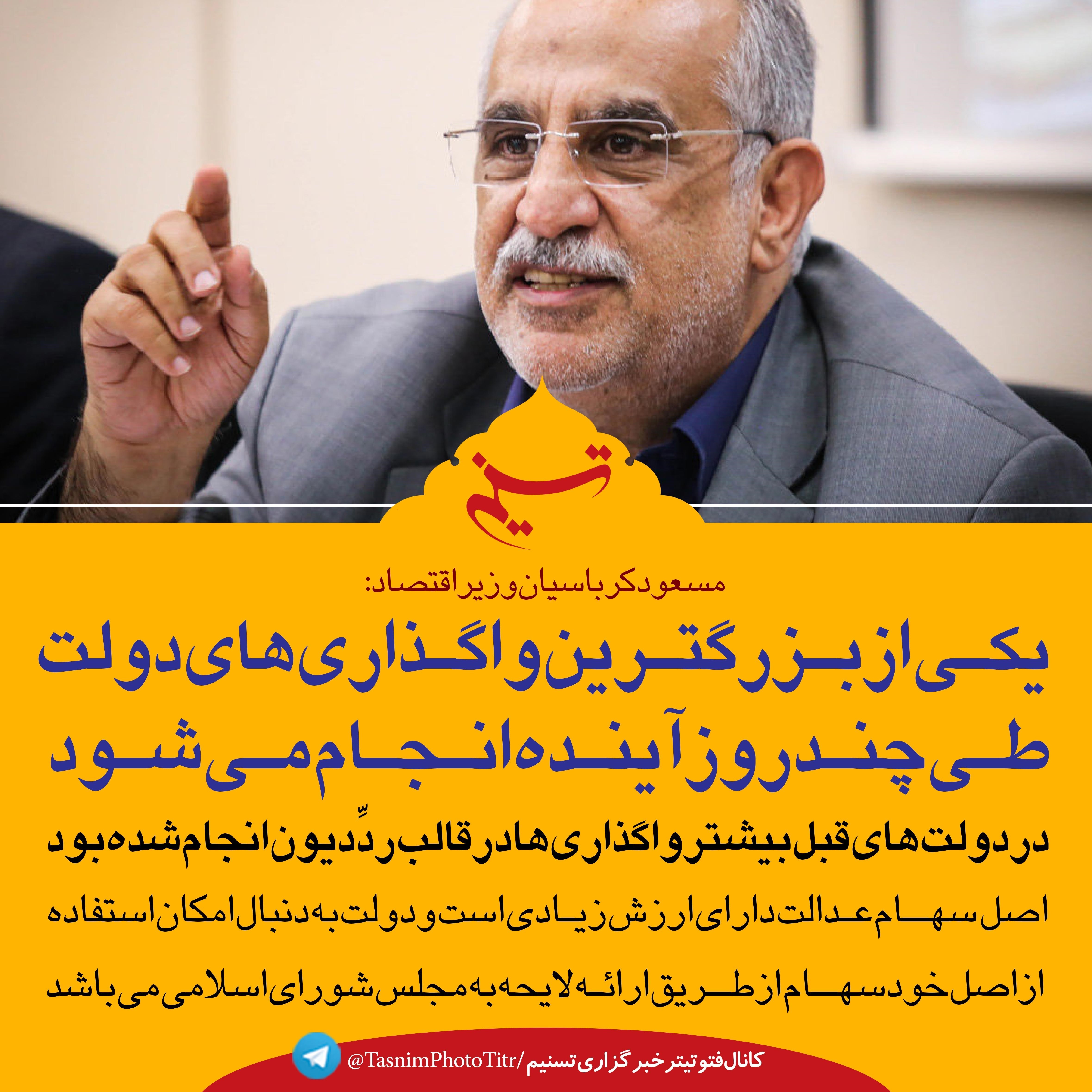 فتوتیتر| کرباسیان: یکی از بزرگترین واگذاری های دولت طی چند روز آینده انجام می‌شود
