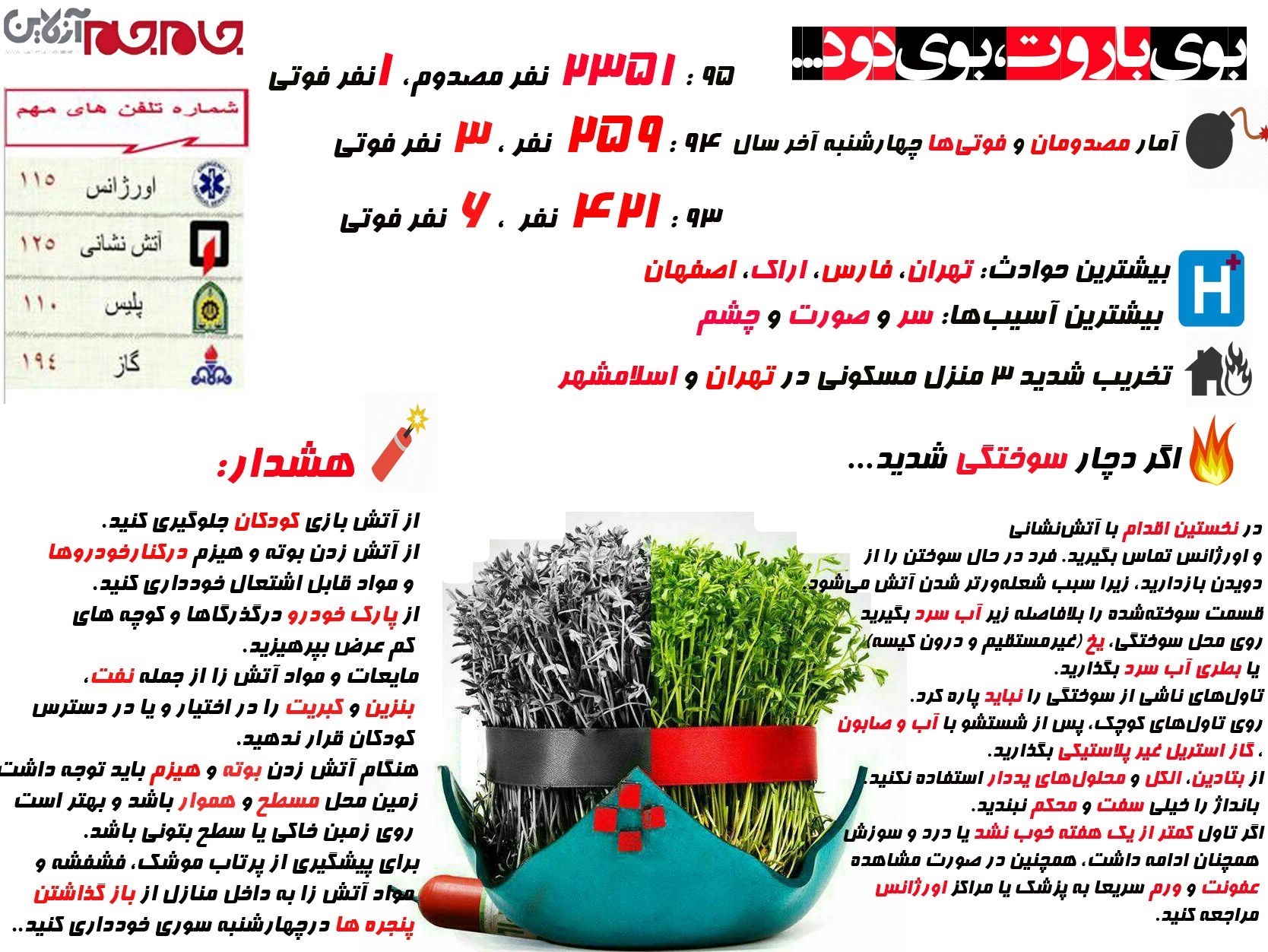 به گزارش خبرنگار گروه رسانههای خبرگزاری تسنیم،سه شنبه آخر سال و مراسم چهارشنبه سوری یکی از سنتهای قدیمی ما ایران است، این روز برای همه ما یک روز هیجان انگیز و در عین حال خطرناک بوده و هست، هرچند توصیههایی برای پرهیز از ترقه بازی وجود دارد، اما کو گوش شنوا؟