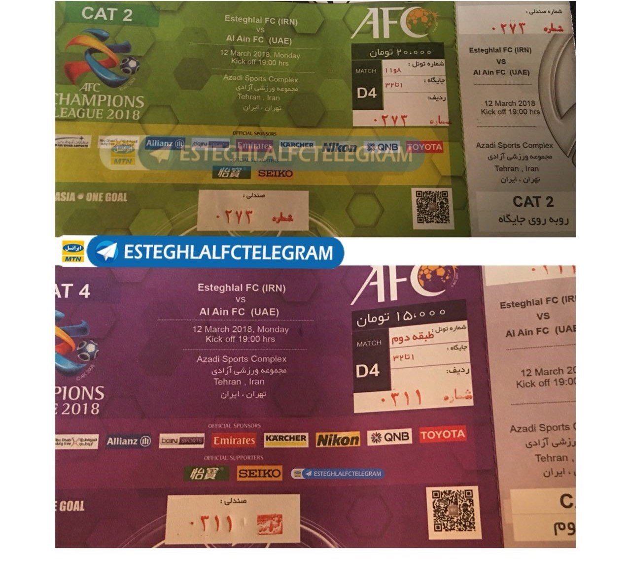 تصاویر بلیت‌های این مسابقه را در زیر مشاهده می‌کنید: