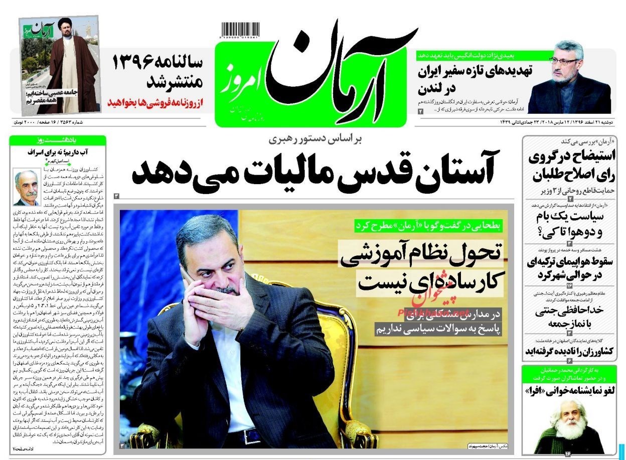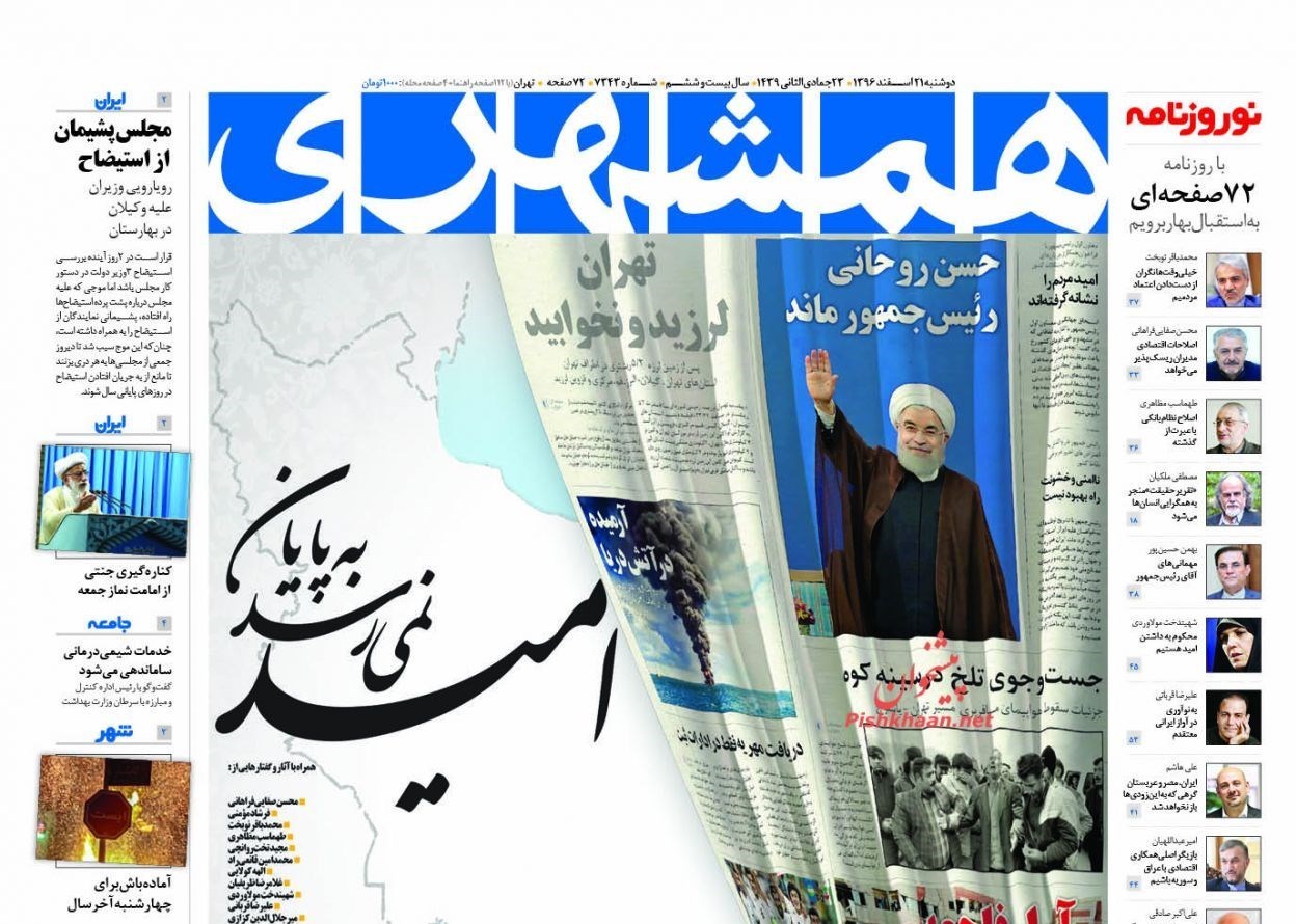 تصاویر صفحه روزنامه‌های دوشنبه 21 اسفند