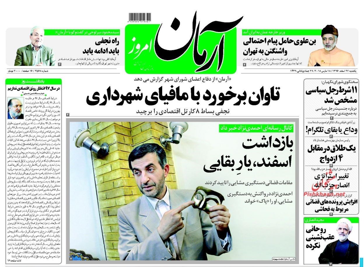 تصاویر صفحه روزنامه‌های یکشنبه 27 اسفند