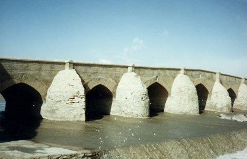 این پل که قدمت به آن دوره صفویه میرسد بر روی رودخانه قرهچای ساخته شده و دارای 5 دهانه است که 3 دهانه مرکزی دارای اندازه مساوی و 2 دهانه دیگر کوچکتر هستند. این پل بر روی 4 ستون سنگی پیریزی شده و ملات به کار رفته در آن، آجر و گچ است.