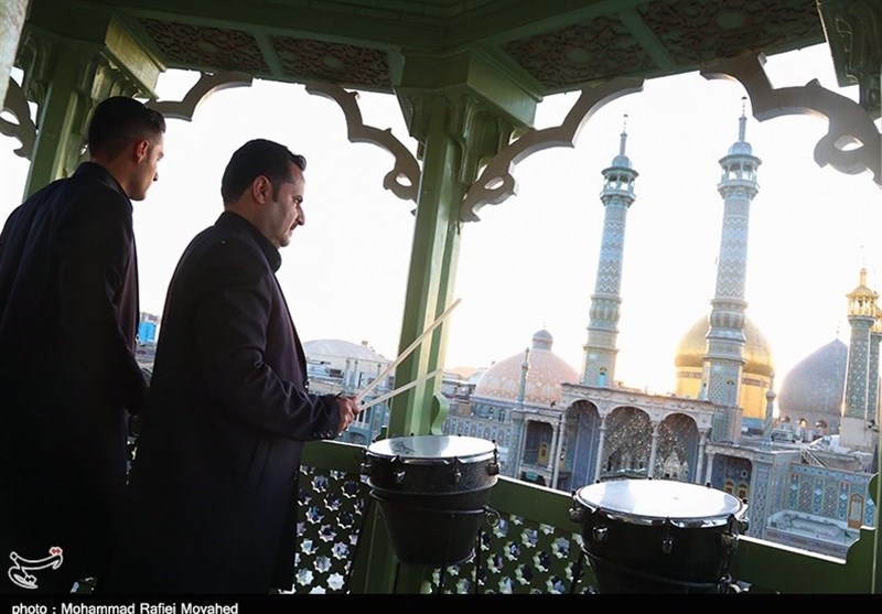 قم|نقاره‌زنی در حرم حضرت معصومه(س) همزمان با شب لیلة الرغائب به‌روایت تصویر
