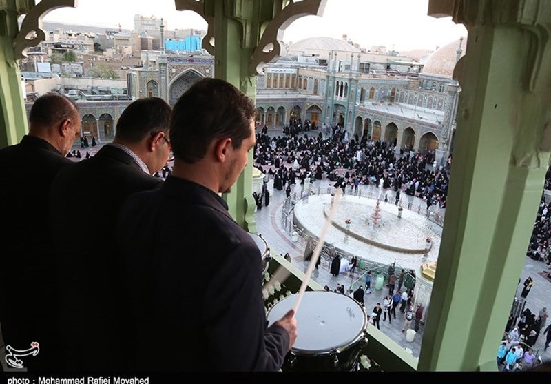 آیین نقاره‌زنی خادمین بارگاه کریمه اهل‌بیت(س) همزمان با شب لیلة الرغائب برگزار شد.