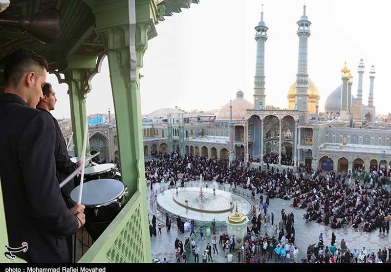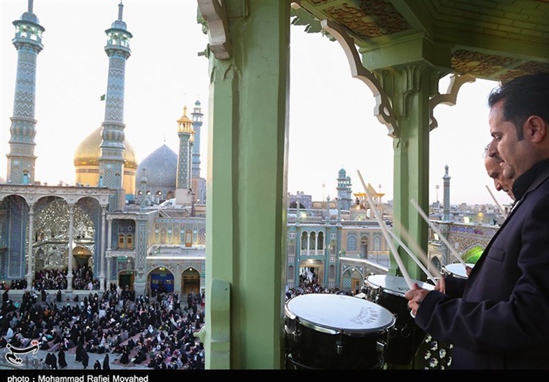 به گزارش خبرگزاری تسنیم از قم، آیین نقاره‌زنی خادمین بارگاه مطهر کریمه اهل‌بیت(ع) حضرت فاطمه معصومه(س) در شب لیلة الرغائب برگزار شد.