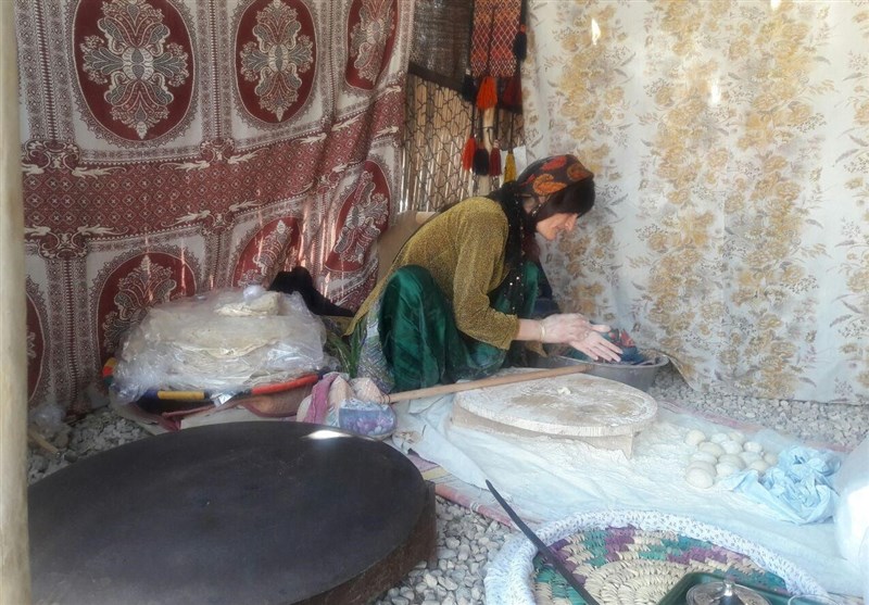 پریناز از ایل قشقایی شهر شیراز است که با همراهی خانوادهاش در جشنواره شرکت کرده است. در گوشه سیاه چادرشان مشغول پخت نان محلی یا به گفته خودش «نان تیری» است. در گوشه گوشه سیاه چادر صنایع دستی مانند گلیم، پشتی و دیگر دستبافتهها دیده میشود. وی نیز معتقد است که امسال درآمد و فروش محصولات نسبت به سالهای گذشته خوب نیست.