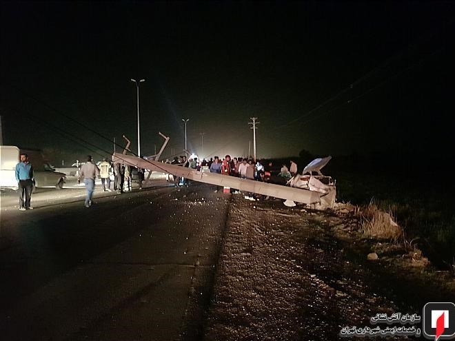 جعفر شکرانه مهربانی؛ افسر آماده منطقه هفت عملیات سازمان آتشنشانی تهران درباره جزئیات این حادثه اظهار کرد: یک دستگاه خودروی پژو206 درحال حرکت ناگهان از مسیر اصلی منحرف شد و بهشدت با تیر برق برخورد کرد که بر اثر این حادثه سه سرنشین در داخل خودرو محبوس شده بودند، همچنین تیر برق بهروی زمین سقوط کرده بود.