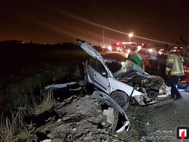 به گزارش گروه اجتماعی باشگاه خبرنگاران پویا؛ ساعت 1:33 بامداد امروز حادثه تصادف در جاده ورامین، نرسیده به قلعهنو به سامانه 125 اعلام شد که بیدرنگ با هماهنگی ستادفرماندهی آتشنشانی تهران، آتشنشانان ایستگاه 86 و گروه امداد و نجات 17 این سازمان به محل حادثه اعزام شدند.