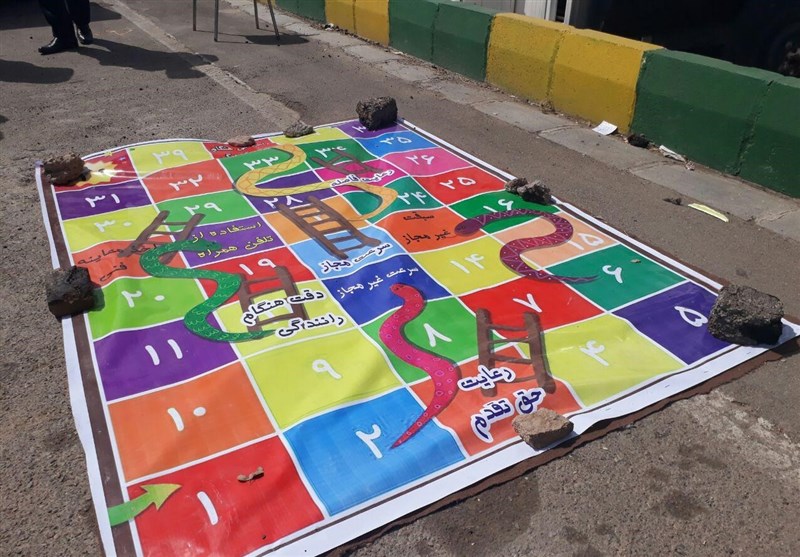یک جدولی مانند بازی مار و پله طراحی و در زمین پهن کرده است که اگر بعد از انداختن تاس روی خانههای سرعت و سبقت مجاز بیاید توسط نردبان بالا میرود و اگر روی خانههای سبقت و سرعت غیرمجاز و خوابآلودگی رانندگان بیاید توسط مار نیش زده میشود و اگر کسی زیر سه دقیقه برنده بازی شود نامش برای لیست افراد قرعهکشی نوشته میشود و این بازی برای قشر کودکان و نوجوانان بسیار خوب است.