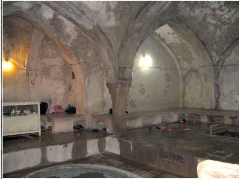 مصالح به کار رفته در آن آجر، خشت، گل و سیمان بوده و سال 86 بازسازیشده و اکنون نیز در حال استفاده عمومی با کاربری حمام است.