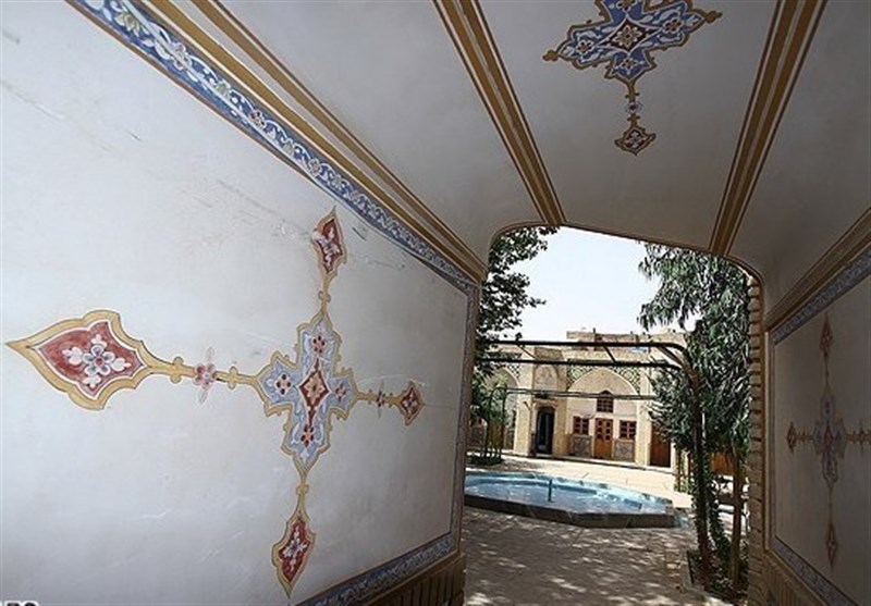 از در که وارد میشوی٬ باید از دالانی کوچک عبور کنی. پا گذاشتن به حیاط یعنی پا گذاشتن به دنیایی از نور و رنگ. باد شاخ درختان را به رقص آورده و خورشید روی سطح شفاف آب حوض جلوه میکند. طبیعت اولین عنصری است که در این بنا به خوشامد تو میآید. پساز آن همنشینی رنگ آجرها و کاشیها تو را به بهشتی از زیبایی میبرد.