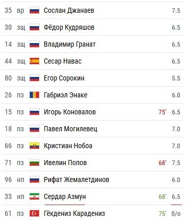 در این میان خبرگزاری چمپیونات با مشارکت کاربرانش به بازی 22 دقیقهای سردار آزمون در ترکیب روبینکازان نمره فنی متوسط 6.5 را اختصاص داد. آزمون از دقیقه 67 به جای پوپوف، هافبک بلغارستانی روبین کازان وارد میدان شد.