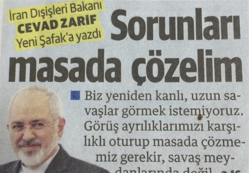 به گزارش گروه سیاست خارجی خبرگزاری تسنیم، روزنامه ینی شفق ترکیه در آستانه اجلاس سه جانبه روسای جمهوری ایران، ترکیه و روسیه در شماره امروز(جمعه) خود مقاله محمد جواد ظریف، وزیر امورخارجه ایران را با عنوان "ضرورت پایبندی به اصول مشترک" به چاپ رسانده است.