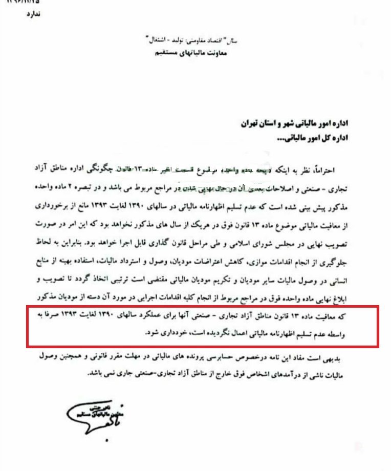 بر اساس بخشنامه سازمان مالیاتی، روند اقدامات اجرایی مالیاتی برای برخی مودیان مناطق آزاد تجاری متوقف شد.
