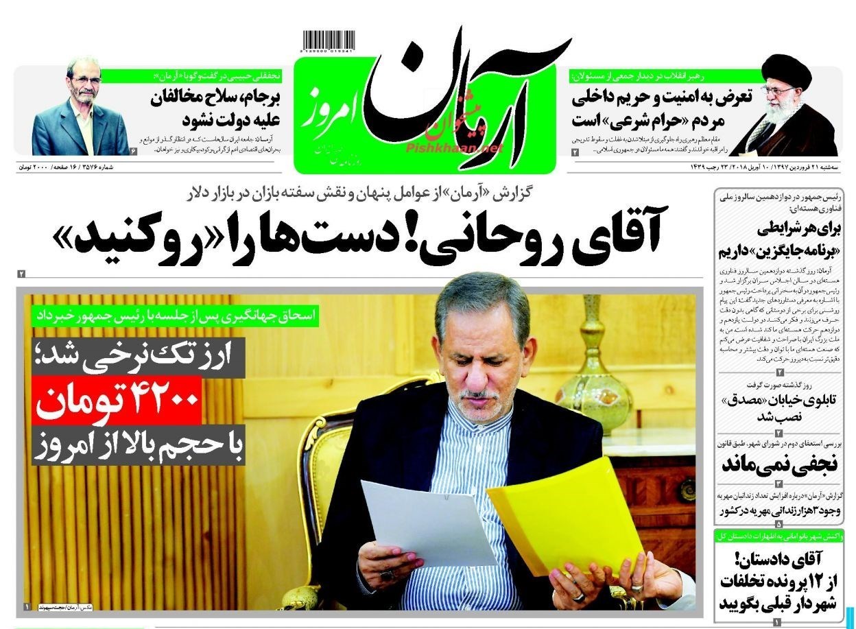 تصاویر صفحه روزنامه‌های سه‌شنبه 21 فروردین