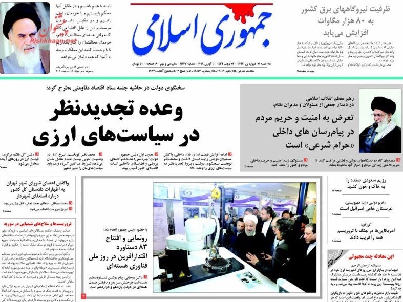 به گزارش گروه رسانه‌های خبرگزاری تسنیم، تصاویر صفحات نخست روزنامه‌های کشور امروز سه‌شنبه 21 فروردین به‌شرح زیر منتشر می‌شود.