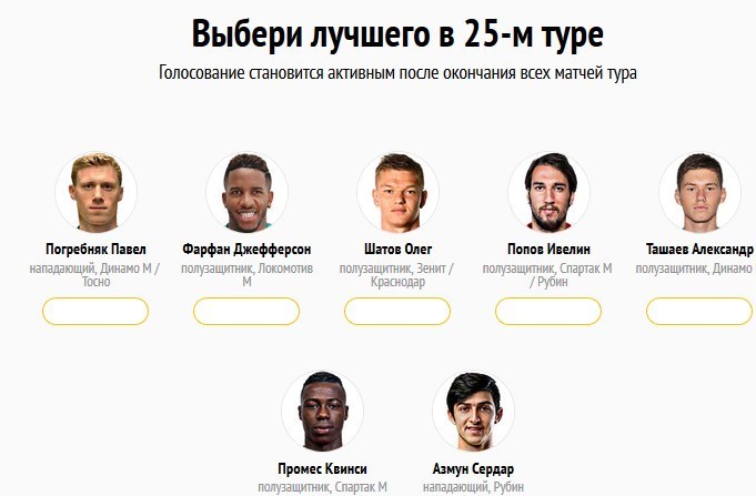 انتخاب نامزدها و بهترین بازیکن هفته لیگ برتر روسیه در خبرگزاری ورزشی چمپیونات روسیه با مشارکت کاربران و کمیسیون ویژه روزنامهنگاران ورزشی صورت میگیرد.