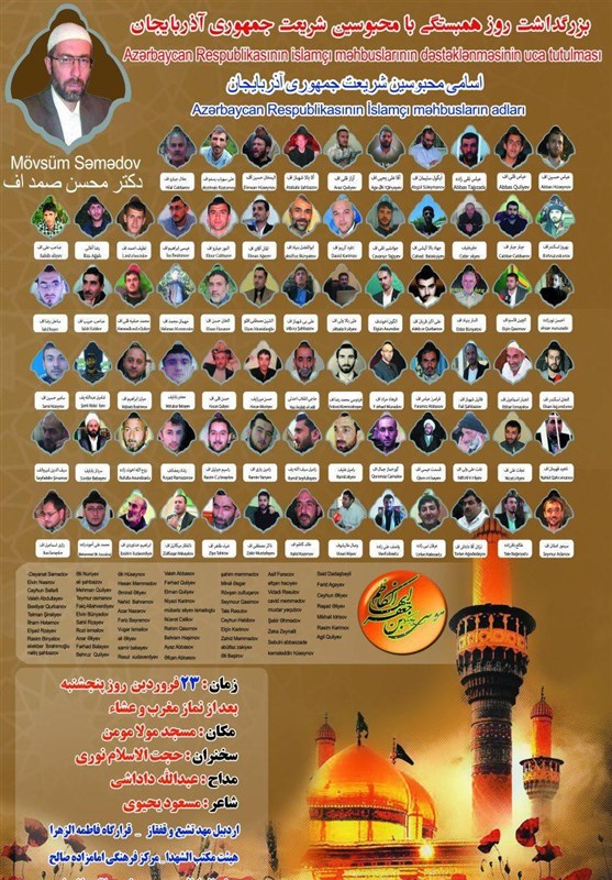 وی با اشاره به اسامی محبوسین شریعت جمهوری آذربایجان افزود: عباس حسین اف، عباس قلی‌ اف، عباس تقی‌زاده، آبگول سلیمان‌ اف،آقاعلی یحیی‌ اف، آراز قلی‌‌ اف، آتابالا شهباز‌ اف، الیمخان حسین‌ اف، علی سهراب رستم‌ اف، حلال جبارو اف،بهروز اسکندر اف، جبار جبار اف،جابر علیف، جهاد بالاکسی اف،جوانشیر تقی اف، داود کریم اف، ابوالفضل بنیاد اف، المان آقای اف، النور جبارو اف، عیسی ابراهیم اف، لطیف احمد اف، رضا آغالی، صاحب علی اف، احسن نورزاده، الچین قاسم اف، الدار بنیاد اف، علی اکبر قربان اف، الگون اخوند اف، علی بالا ولی اف، علی بی شهباز اف، الشن مصطفی اقلو، الخان حسن اف، مهمان محمد اف، محمد حنیفه قلی اف، صاحب حبیب اف و ساحل رضا اف از جمله این افراد هستند.