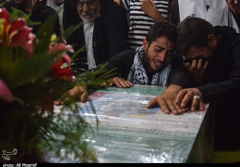 مراسم وداع با پیکر شهید سید عمار موسوی با حضور شهروندان اهوازی، خانواده، دوستان و همرزمانش برگزار شد.