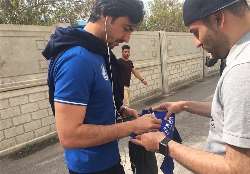 * مهدی رحمتی پیراهن کوچک یک هوادار را که نام آندرانیک تیموریان روی آن درج شده بود را، برایش امضا کرد.