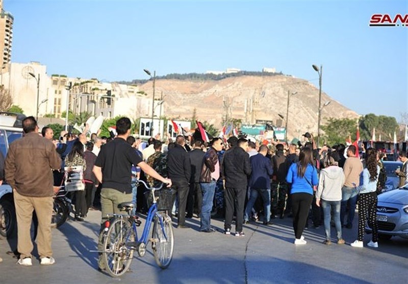به گزارش گروه بینالملل خبرگزاری تسنیم به نقل از سانا، ساعاتی پس از تجاوز نظامی چند ملیتی غرب به سوریه، دهها نفر از ساکنان دمشق، پایتخت این کشور به خیابانها آمدند تا حمایتشان از دولت قانونی «بشار اسد» را به نمایش بگذارند.