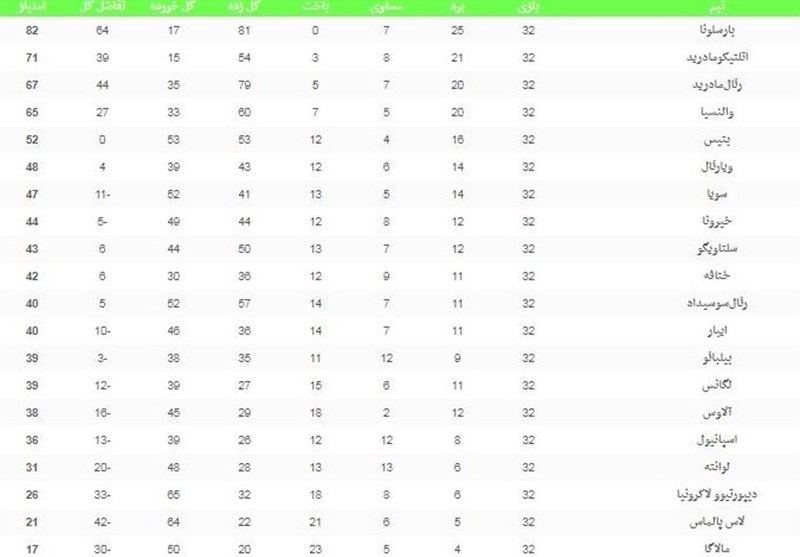 در زیر جدول لالیگا را مشاهده کنید.
