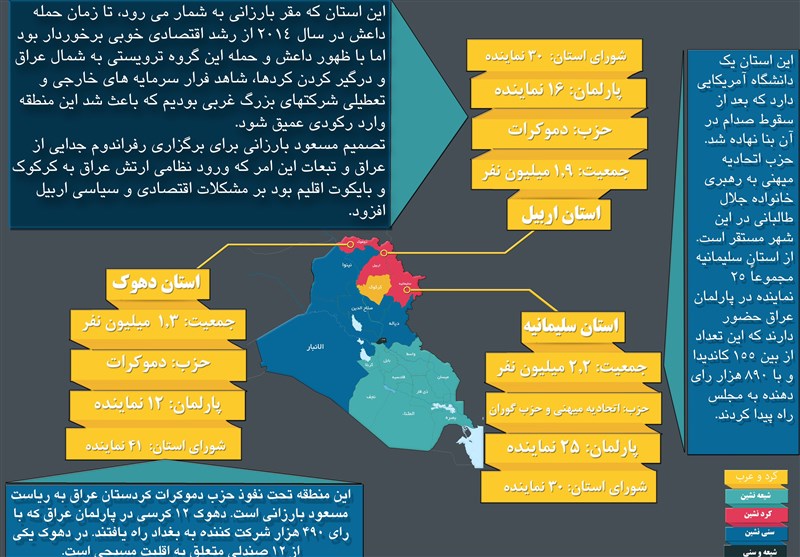 اینفوگرافی زیر نگاهی اجمالی به سه استان کردنشین اقلیم کردستان عراق دارد.