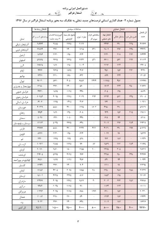 پیش بینی ایجاد اشتغال فراگیر در سه محور مختلف از سوی دولت شامل موارد زیر است. این برنامه سال گذشته تهیه و امسال ادامه دار است.