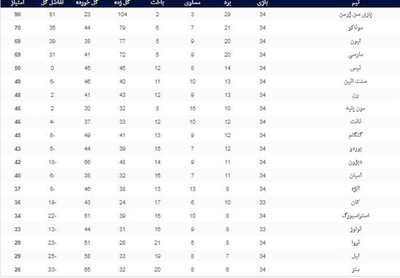 در زیر جدول ردهبندی لوشامپیونه را در زیر مشاهده کنید.