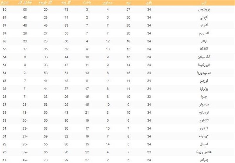 جدول ردهبندی سری A را در زیر مشاهده کنید.