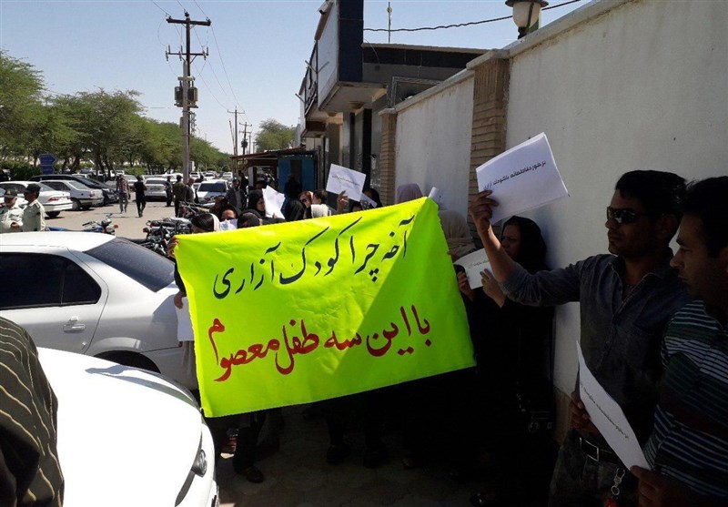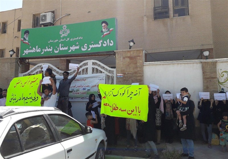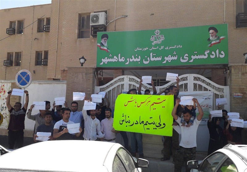 امروز نیز جمعی از مردم بندر ماهشهر در اعتراض به کودک آزاری دو کودک توسط نامادریشان مقابل دادگستری شهرستان بندر ماهشهر تجمع کردند.