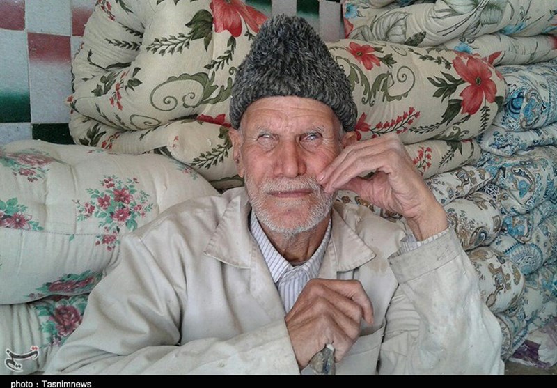 «محمد دارابی» حالا 77 سال سن دارد. زندگیاش به لحافدوزی میگذرد و پنبههایی که با رشتههای آن ناکوک روزگار را چرخانده با دستهای پینه از چروکهای کار: «از کودکی لحافدوزی را یاد گرفتهام و شاگرد میرزا لحافدوز که از خرمآباد آمده بود، بودم. یک چشمم در کودکی از دست رفت، تا سال 52 با یک چشم میدیدم. با همان یک چشم، چاهکنی، بنایی و خشتمالی میکردم. همانسال حادثهای پیش آمد. بر اثر آن هر دو چشمم از دست رفت. در سال 42 که فوتوفن لحافدوزی را یاد گرفته بودم، دکانی برپا کردم در خیابان رهبری. روزهایی که در کوهدشت بازار کار نبود، به روستاها میرفتم.»