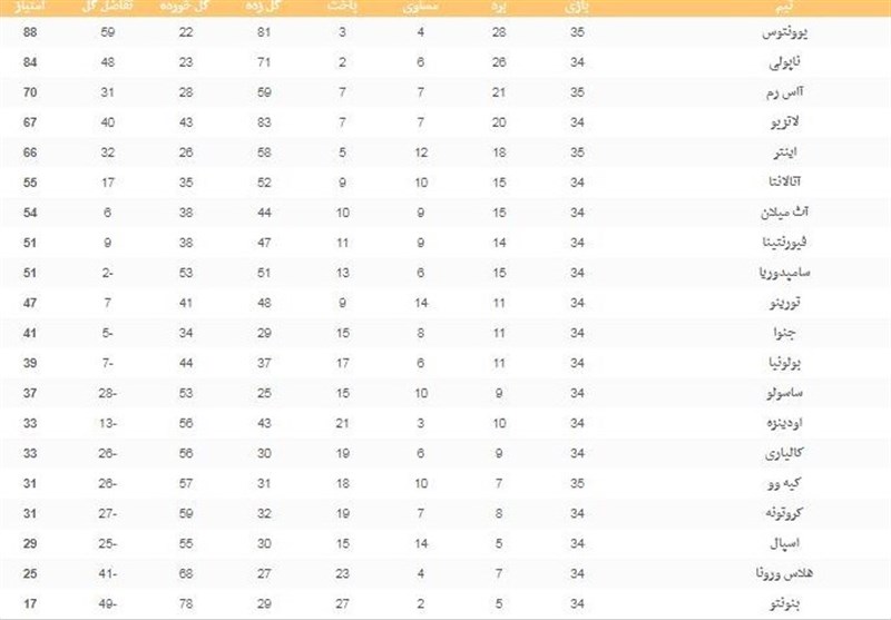 جدول رده‌بندی سری A را در زیر مشاهده کنید.