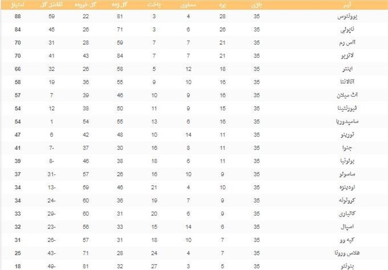 جدول ردهبندی سری A را در زیر مشاهده کنید.