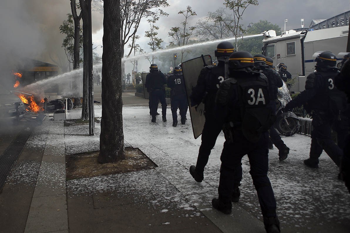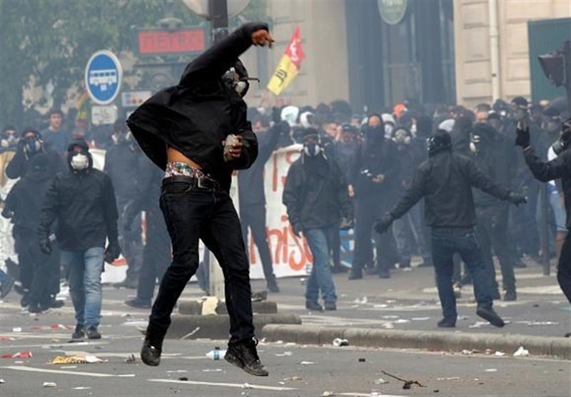 در پاریس هم تجمع گسترده اعضاء اتحادیههای کارگری به تخریب اموال عمومی و پرتاب اشیاء و بمب دستی آتشزا منتهی شد. در مقابل پلیس اقدام به پرتاب گاز اشکآور و استفاده از ماشینهای آبپاش کرد. وزارت کشور فرانسه ضمن محکوم کردن بروز خشونت در تجمع روز سهشنبه، اعلام کرد که حدود هزار و 200 نفر را که آنها را افرادی مشکوک عنوان کرده، شناسایی شدهاند که قصد برهم زدن نظم عمومی و ایجاد اغتشاش را داشتهاند.