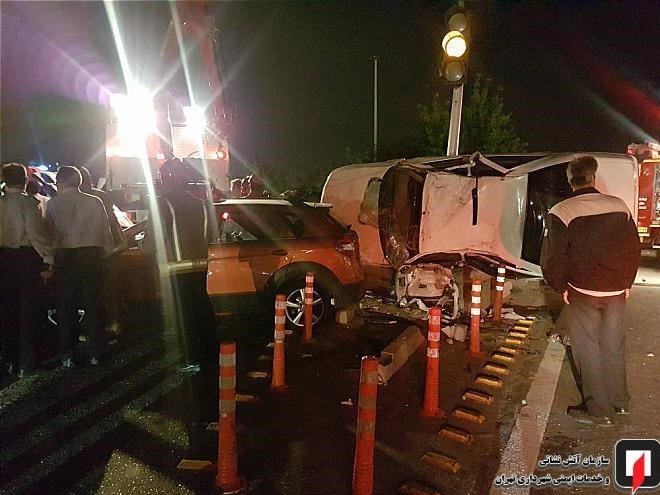 وی ادامه داد: شدت این تصادف به حدی بود که هر دو خودروی سواری واژگون شده بودند که تمامی سرنشینان دو خودرو (هشت نفر) پیش از رسیدن آتشنشانان توسط حاضران در محل، از خودروها خارج شده بودند.