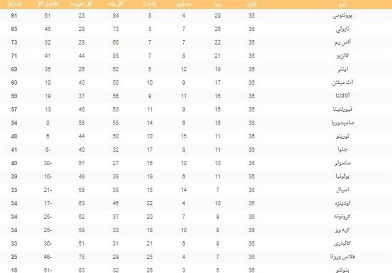 جدول ردهبندی سری A را در زیر مشاهده کنید.